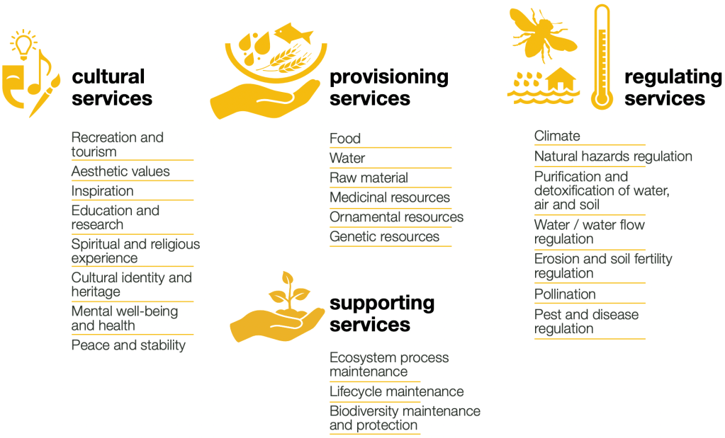 A few more examples of ecosystem services and how to identify the ones in your system. From the IUCN.